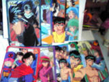 戦利品 なんでもない 2009年08月12日 久々にリサイクルショップへ。写真一枚目。ジャンボカード…ですか?面倒なので、一気撮り。これが噂に聞くジャンボカードダスか?と思ったんだけど、ドラゴンボールでもっとでかいの見たしなぁ…?一袋に五枚(多分)入りで、三つで100円コーナーにありました。結構ダブったけど、それは妹へ。写真二枚目。1997年アニメージュ3月号付録。データノートって何だってカンジですが、最初のほうはは97年カレンダー&96年年間ベストキャラランキング結果が載ってます。んで、それ以降が説明するのも面倒なくらい多量のデータ帳。歴代アニメグランプリ受賞者やら、96年アニメ視聴率ランキングやら、人物INDEXと作品INDEX…かな?まだ全く読んでないけどさ…。なんでこんなもんまで買ったんかって思われるでしょうが、抱き合わせでした。いや、オマケ?とにかく、83年のアニメ雑誌買ったら一緒に入ってました。年代も雑誌もバラバラに詰め合わせてあって、他はガンダムwのラスト直前別冊とか、ザブングルポスターとか、アニメトピアポスターとか。うーむ。アニメグランプリ、94年の緒方さん強い!ところでこのイベント、まだ武道館で表彰してんの?